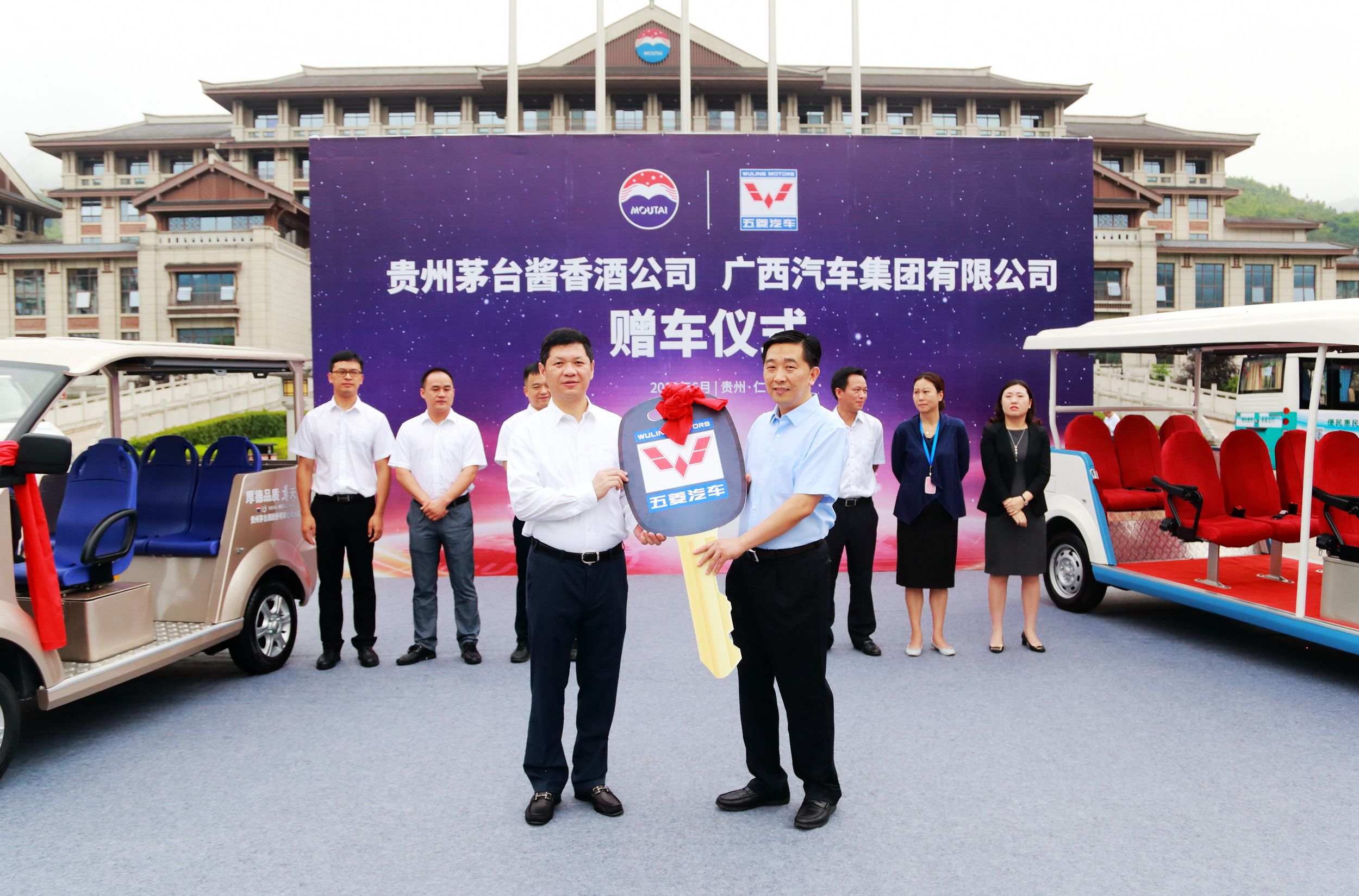 為進一步加深與茅臺醬香酒的合作,廣西汽車集團專屬定制2款經(jīng)典五菱觀光車贈送茅臺醬香酒公司,在其廠區(qū)內(nèi)使用。其中一款五菱威威觀光車,全國50%以上5A級景區(qū)在用,也是2017年“一帶一路”高峰論壇故宮接待國賓的唯一指定觀光用車。另一款為五菱電動觀光車,是一款可選裝鋰電池的新能源車,適用于景區(qū)觀光、社區(qū)公交、共享租賃等,此次更是結(jié)合了茅臺醬香酒的金色和企業(yè)LOGO特別定制。
