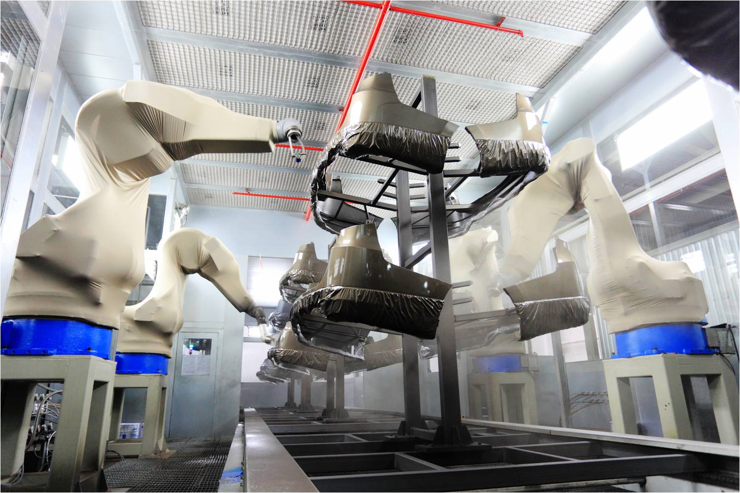 目前,公司已建立起前后保險杠自動噴涂生產(chǎn)線、后部下車體臺車自動線、前圍板機器人工作站、前大梁機器人工作站、前地板雙向往復(fù)+臺車自動線等多條柔性化生產(chǎn)線。