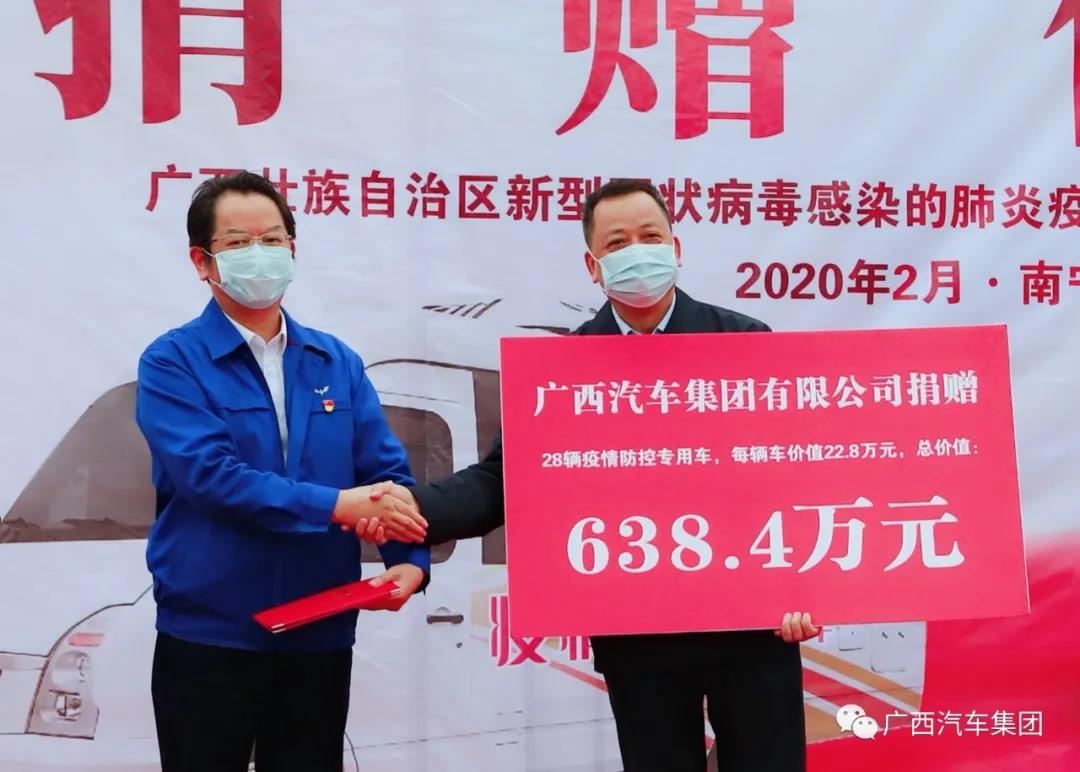 2月28日,廣西汽車集團再次扛起國企擔當,進行第三批疫情捐贈,向自治區(qū)新冠肺炎疫情防控指揮部捐贈28輛疫情防控專用車,每輛車價值22.8萬元,總價值638.4萬元,捐贈的疫情防控專用車將分別交付于廣西14個地級市使用。